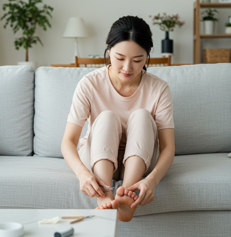 발톱을 깎기 전에 따뜻한 물에 발을 10~15분 정도 담가두는 것도 좋은 습관입니다. 따뜻한 물은 발톱을 부드럽게 만들어 자르기 쉽게 하고, 피부와 발톱 사이의 마찰을 줄여줍니다.특히 당뇨병 환자나 발톱이 단단한 분들에게 이 방법은 큰 도움이 됩니다. 물에 소금을 약간 첨가하면 소독 효과도 얻을 수 있어 일주일에 2~3번 정도 실천하면 좋습니다. 발을 불린 후에는 깨끗한 수건으로 완전히 말려주세요. 습기가 남아 있으면 곰팡이 감염의 위험이 있으니 주의가 필요합니다.